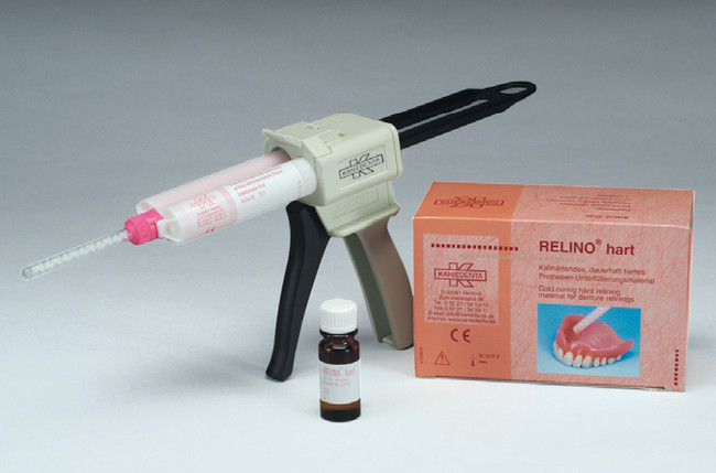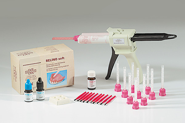 Relino soft este un silicon de aditie disponibil in cartuse, utilizat pentru captusirea de durata a lucrarilor protetice, atat direct, in cabinetul de medicina dentara, cat si indirect, in laborator. Relino soft este compatibil cu toate materialele pe baza de polimetilmetacrilat. Primerul disponibil garanteaza o adeziune de lunga durata intre lucrarea protetica si acest material. In cadrul kitului Relino soft este disponibil si un lac (varnish),indicat a fi folosit pe suprafetele rugoase si neregulate.