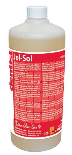 Solvent (original Jelenko-formula) for cement and zinc oxide-eugenol pastes; for cleansing crowns and bridges, plastic prosthetic applications, impression trays, etc.