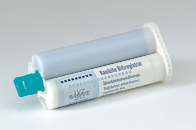 Kanibite Bissregistrat este un silicon de aditie de consitenta crescuta, aplicat din seringa, destinat inregistrarii ocluziei. Este utilizat de asemenea pentru inregistrarea ocluziei habituale, in tehnica fixarii stifturilor intraorale sau in cadrul determinarii relatiei centrice. Producator Kaniedenta.